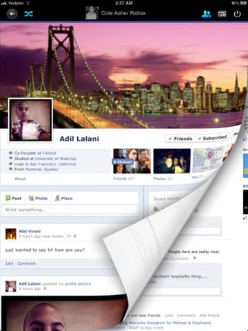 The MyPad app for Facebook has performed so well that the developers, Loytr, have launched another iPad app devoted to Facebook called “Timelines for Facebook” which allows you to browse through your friends’ timelines with the flick of a wrist, as if each profile was printed on a digital magazine page with page animation and everything!