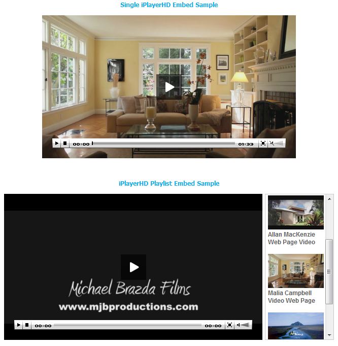 Enter iPlayerHD which offers a customizable option which improves web video viewing from a simple interface professionals can use to upload video content without having YouTube ads slapped all over it or oddly related and distracting videos. iPlayerHD videos can be embedded directly or within customizable embedded players as pictured below: