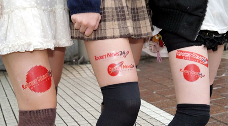 The new advertising spaces getting all of the attention is where the eye is naturally drawn by both genders – the space in between a mini skirt or shorts and knee-high socks, a popular combination in Japan. Women are now renting out their legs for the day, according to RocketNews.