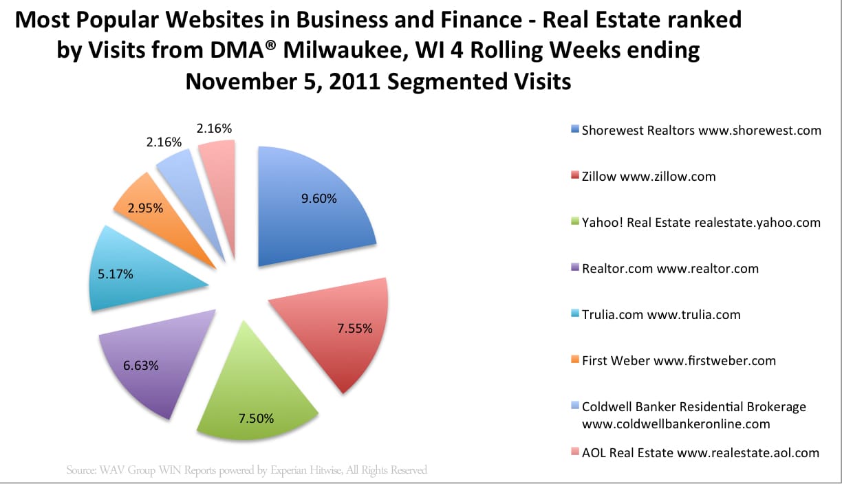 The graph above uses Experian Hitwise data, but comparing the numbers to comScore data presents an alternative picture. Just comparing the three most common real estate search sites with Shorewest in Milwaukee, WI in January presents an interesting picture: