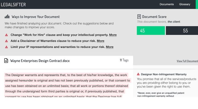 Freelancers enter new contracts monthly, sometimes even weekly, or daily, and keeping someone on retainer would quickly bust your budget. LegalSifter is a new app aimed at helping you make sense of your contracts, by simply analyzing the text of any contract you upload.