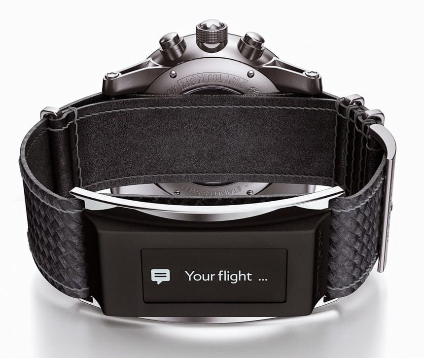 Unlike other smartwatches made by Apple and Motorola, whose clock face becomes a touchscreen, the Montblanc smartwatch will include a traditional mechanical clock with the smart device built into the leather “e-Strap.”