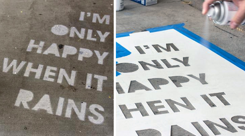 Whether NeverWet used for safety reasons (painting “slippery when wet” outside of your building) or for street art (which comes alive in the rain), the spray can be used on stone, concrete, or even wood, and with a simple stencil pattern, the invisible paint becomes visible in the rain.