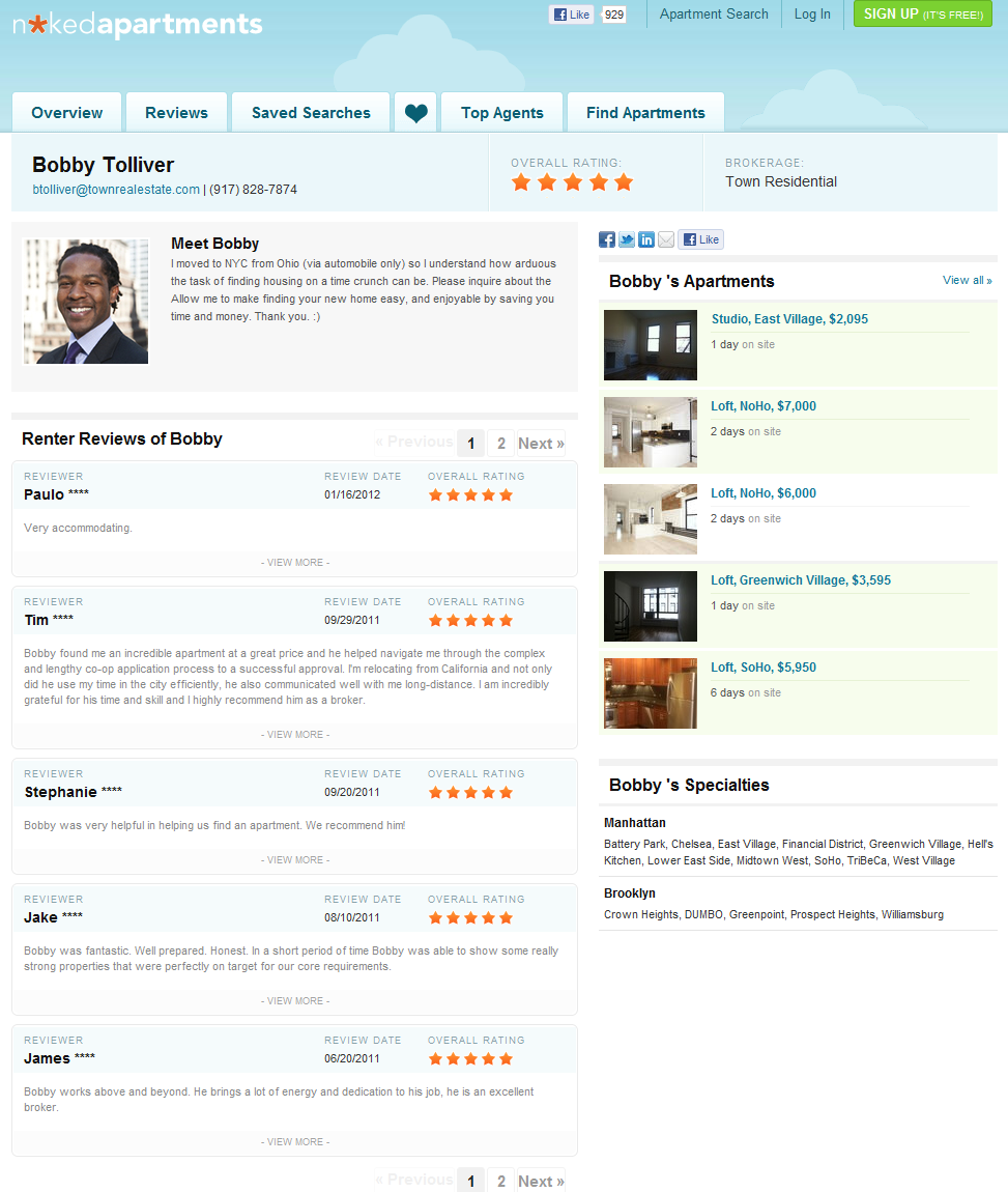Below is a sample agent profile of a top agent that made their hall of fame list, click the image to view the agent’s profile on nakedapartments.com: