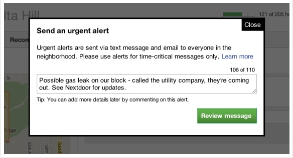 Now, the company is announcing the launch of “Urgent Alerts” wherein users can alert their neighbors of various events. Normally, when a member posts a message on their Nextdoor website, their neighbors are notified by email and the company says that “for especially time-sensitive information, this may not be fast enough,” so there is a special type of post that goes to members via mobile phone text message in addition to email for the “rare cases” where information is extremely time sensitive.