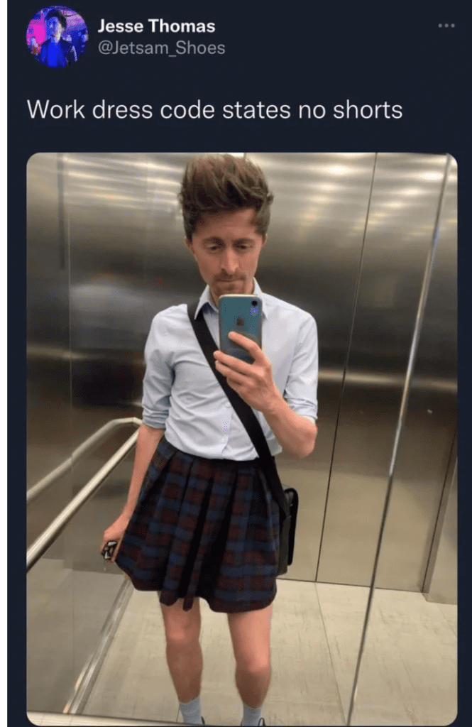 During last week’s unprecedented heat in England, worker Jesse Thomas decided his company’s “no shorts” policy was too much to bear.