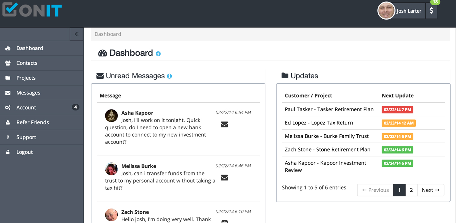 Onit.io helps you accomplish this by centralizing communication. All of your messages to and from your customers are stored online so you, or anyone else you authorize, can access them: any time, any where. Whether your customer prefers email, texts, or phone calls, Onit.io keeps your information in sync.