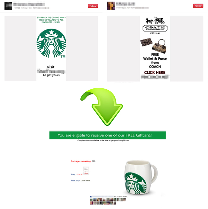 Now, when you go to Pinterest, you’ll be met with well meaning people sharing that Starbucks is giving away free gift cards to Pinterest users, and it looks legitimate, but when you visit the site, it is a knock off site that collects your information but is a scam. These scammers are prevalent on Facebook and when you get spam messages that appear to be from friends, most have become groomed to be able to spot a scam and realize that clicking on a suspicious link can get your financial data stolen and abused.