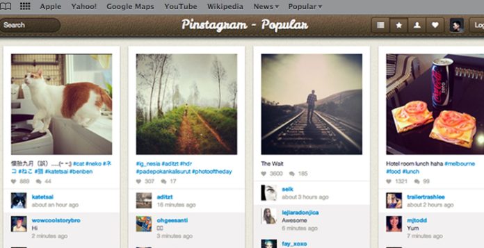 Visitors to Pinstagram sign into Instagram, and their default feed of friends’ photos, their photos, favorites, and popular pictures, are all pulled together into a Pinterest-esque interface, giving Instagram photos a more meaningful web presence through a nod to Pinterest’s now famous tile design, allowing likes, comments, or the ability to pin the photos directly to Pinterest.