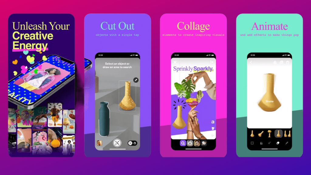The app promises the ability both to upload photos from your camera roll or the internet and to snap photos of your own to add to your collage. Shuffles also draws from Pinterest’s own database of photos and media, allowing users to interface with their past artistic collections if they so choose.