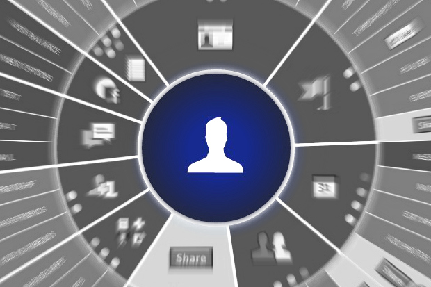 Platlas drills down from broad Facebook user behaviors down to the very specific actions taken by a user who is depicted in the center of the circle as the Facebook face icon. Each icon represents a specific area or action on Facebook ranging from apps to photos and events with the outer ring showing the various areas actions a user can take, complete with an explanation.