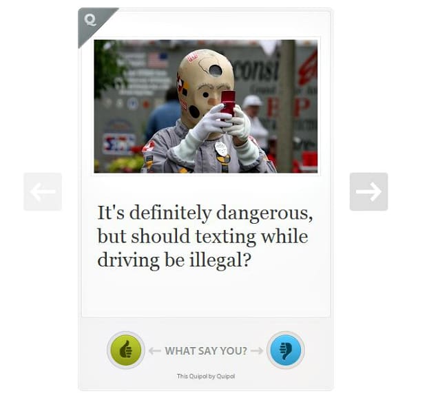 “Quipol was made with love, focus, and a few thousand lines of code. We think it’s the perfect way to find out where your audience stands on virtually any topic,” the company cleverly asserts.