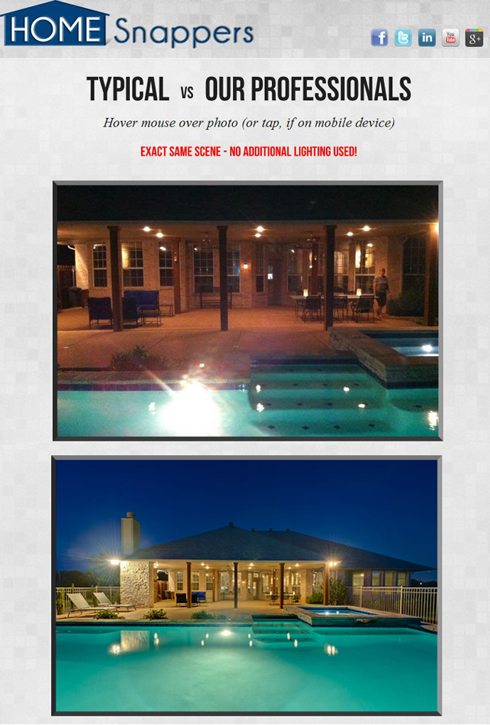Dallas based real estate photographer, Lance Hames has caught the attention of the photography world with his HomeSnappers.com website through creative use of technology to feature before and after shots. Rather than offer side by side shots in his “Typical vs. Pro” showcase, Hames takes a different approach.