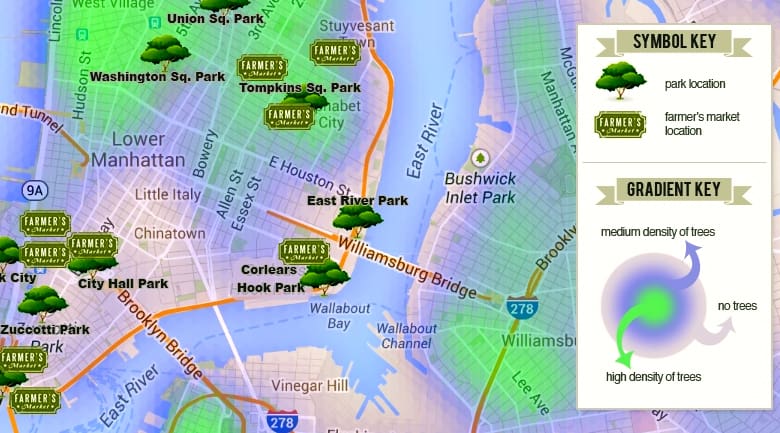 Most New Yorkers are idealists by nature, and many are on the quest for the perfect bistro, the most amazing new underground band, the best little park to have a picnic, and so on. Rentenna is known for giving a score to every single apartment in NYC, but now they’ve added Green Scores and a Green Heat Map, visualizing the tree density per city block, and all of the farmers markets in the city and major parks. The Green Score is now on every single apartment building page and tells renters the closest parks and farmers markets.