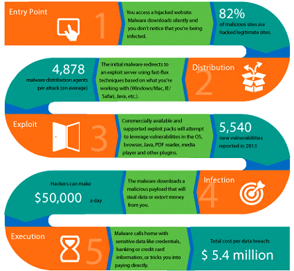 Over the last few years the volume and intensity of malicious web security attacks has grown dramatically, thanks mainly to greater access to high-powered distributed systems and automation; and exploit kits that make execution and distribution simpler for cybercriminals. The strength of attacks is daunting and though the internet community is growing more aware of general risks, the threats seem to outpace it. 2013 is dubbed the year of the mega breach, where we witnessed 253 major breaches that exposed 552 Million identities including credit card data, addresses, passwords and other personal information. This was a 62% increase over 2012 (according to Symantec).