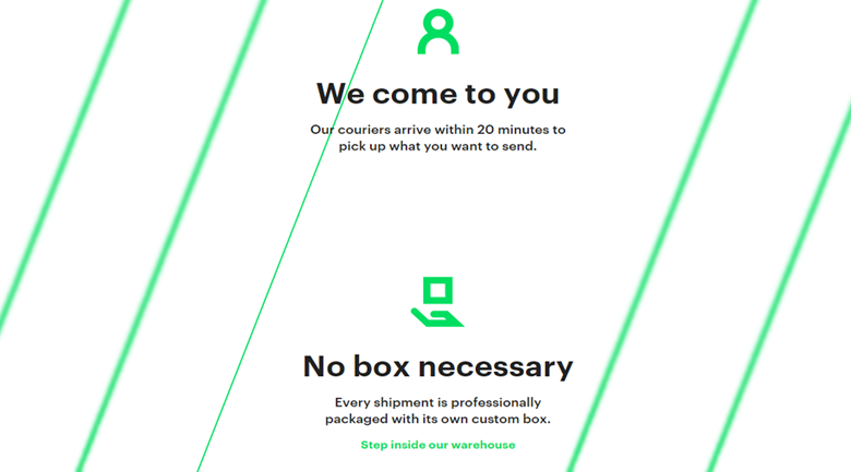 Shyp picks up your items, packages them, and sends your items for the lowest price. Sound too good to be true? It’s not. With Shyp, you’ll take a picture of the items you want to ship. This helps them determine what size vehicle to bring. Once you send them a picture of what you need shipped, a courier will arrive in approximately 20 minutes to pick up your items and get them packaged.