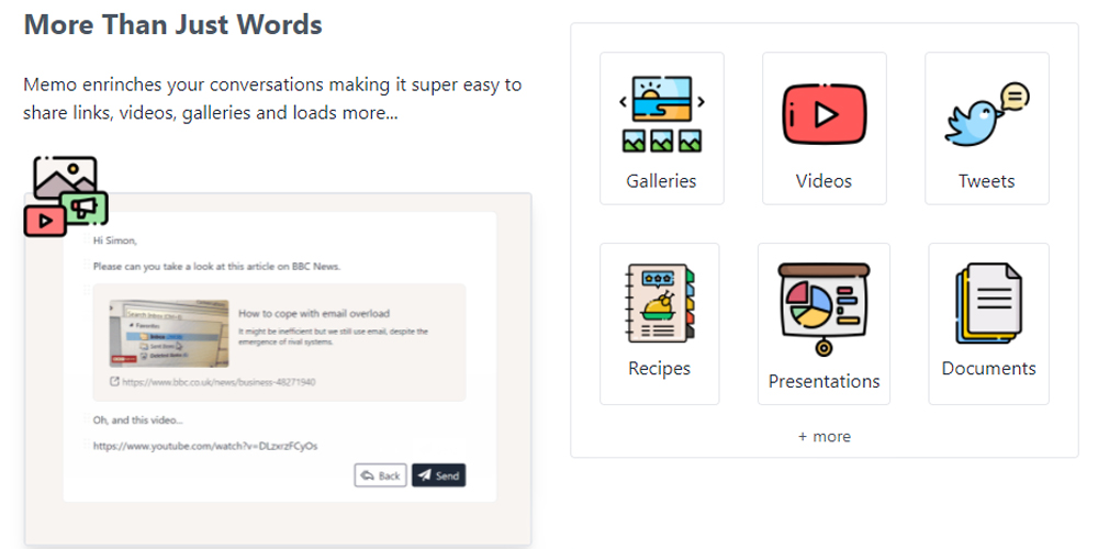 Memo also has several built-in integrations that make viewing and sharing your content with friends and family a lot easier. By simply copying and pasting your YouTube, Vimeo, Loom, Reddit, Twitter, or Google Photos links into your Memo, the app will automatically embed the content for you.
