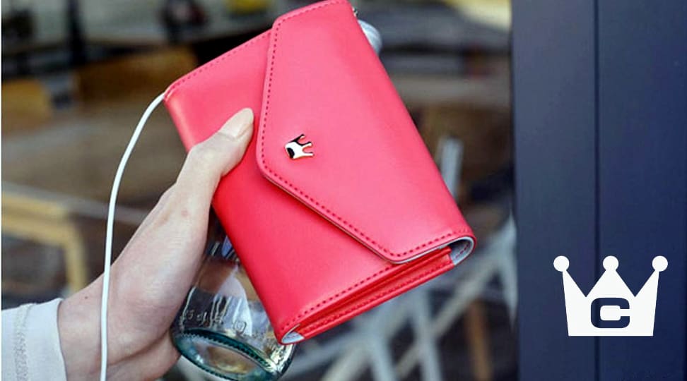 Additionally, this particular smart clutch says credit cards and smartphones are kept in different sections and protects cards from demagnetization. This particular clutch is super inexpensive, at only $13.99, and comes in several colors. We suspect the price point is because it’s not made of real leather. It’s light, at only 1.6 ounces, and is 5.12 inches by 3.93 inches.
