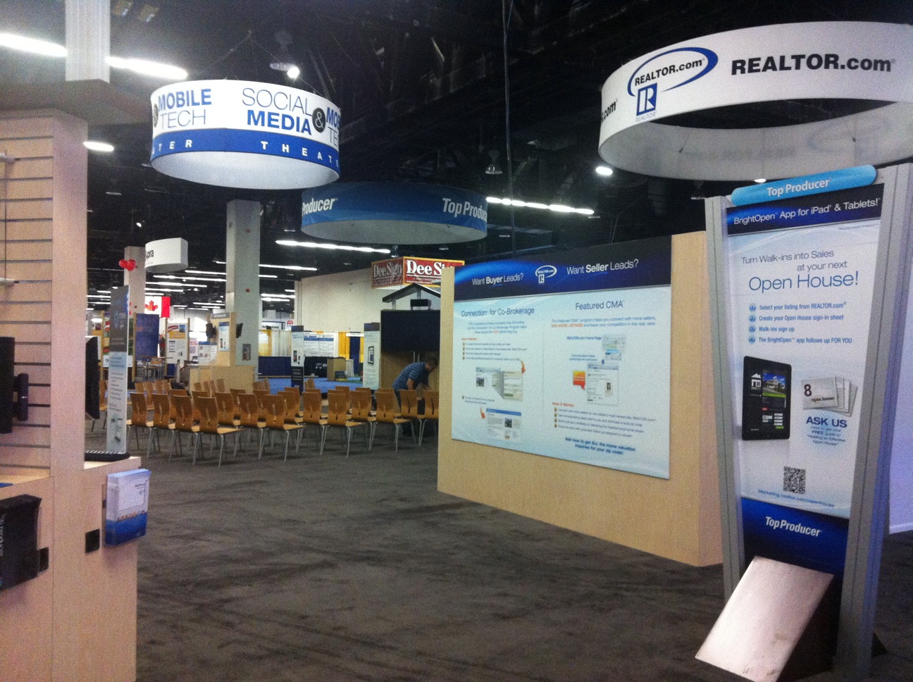 The quick shot above shows the Realtor.com and TopProducer booth which are extremely impressive in person – it is large, the carpet has ridiculously thick padding (hint: ladies in heels, it’s a great resting spot), and has demo station for all of the Realtor.com and Top Producer products, one of which is Top Producer’s new HTML5 CRM that we’ve had several people call us to say they are in love with.