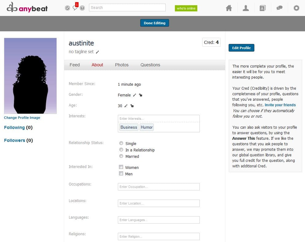 “AnyBeat will not be a typical social network. In fact, we don’t think of it as a social network, but rather as a global community. Therefore we are instituting a set of principles, a culture that will guide our community.