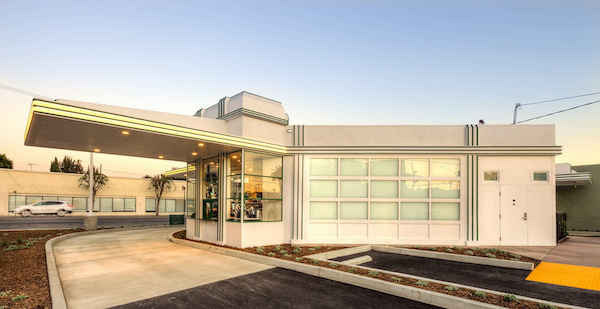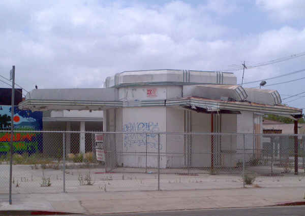 Gilmore Oil Company was a booming business in the Los Angeles area in the 1920s and 1930s. One of their gas stations, located at Highland and Willoughby, was designed by R.J. Kadow in 1935 in the Art Deco style. The gas station had been showing its age for many years, but it could not be demolished because it had been designated a Historic-Cultural Landmark in 1992.