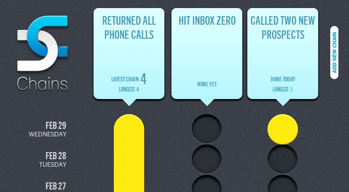 Chains.cc isn’t for those rare tasks you put on a to-do list, as these items are usually on a one-time basis. Even your everyday tasks deserve to be checked off once they’ve been completed. Using this simple, free app can help you stay motivated, connected, productive, and on-track to achieving your ultimate career goals.