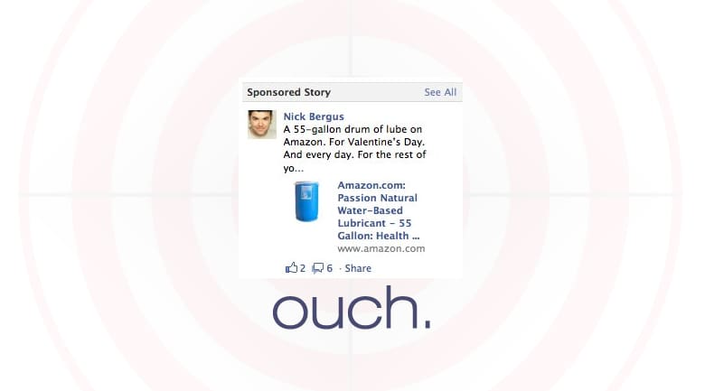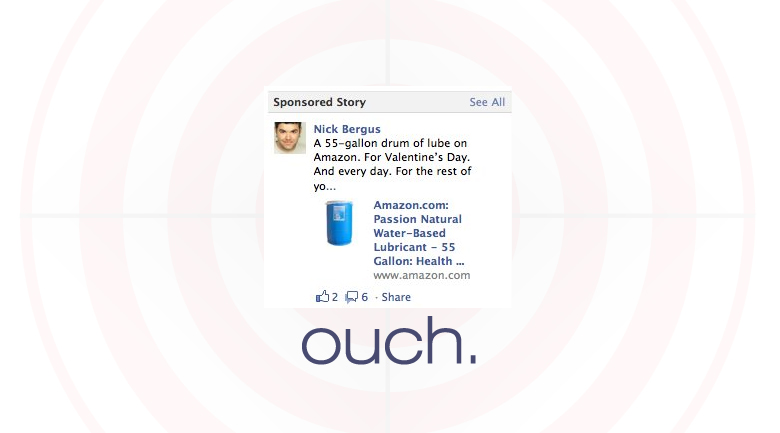 Have you ever noticed that on the sidebar of your Facebook account or even in your timeline that there are sponsored ads, featuring the profile picture of a friend of yours? “Joe Mackford likes Chili’s Baby Back Ribs, you can too for only $9.99” or something similar pops up, which seems harmless, but combine that with a less desirable product, like the one pictured above, and you have a potentially embarrassing or bad situation.