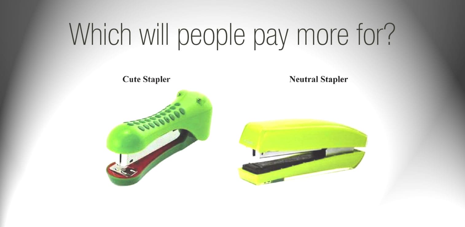 Whimsy versus plain was tested again in the second study, only this time with staplers. Consumers were given a plain stapler, or an alligator-shaped stapler, and most participants said they would use the alligator stapler for crafting or other at-home purpose (considered to be indulgent) while using the plain stapler for work. Now whether this is truly a personal preference, or simply fear of being judged at work for using this alligator stapler, the study does not say.