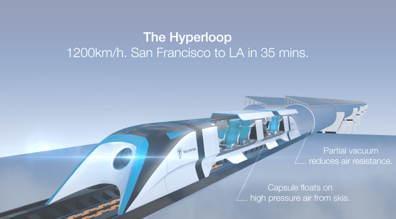 In 2013 Elon Musk published an alpha paper proposing a vacuum sealed tube that can transport magnetically levitated pods at breakneck speeds. This fifth form of transportation is a combination of the ships, planes, cars, and trains that came before it. Like an airplane, the pods will travel in a low pressure environment with minimal friction. This is how they can travel up to 700 miles per hour without causing discomfort to passengers. In this seven to ten foot diameter tube people can cut transportation time to cities 8 hours away by car down to a scant thirty minutes with Hyperloop.