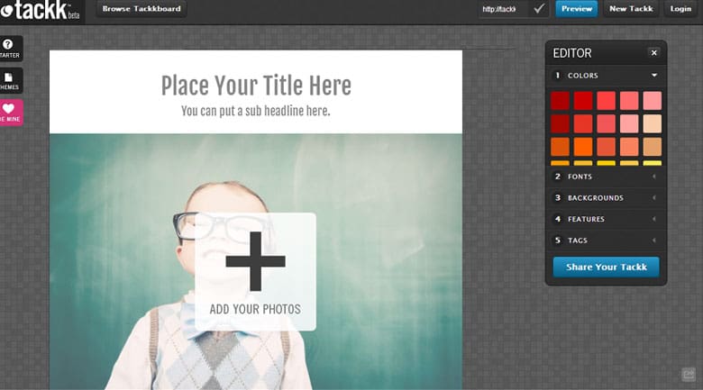 Sharing event information is easy with all the social networks currently available. You can share event information through a simple text update for all your contacts to see, no matter the social network you choose to use. Or you can create your own flyer and upload it into your social networking album, but that can take a lot of time and work, and it’s not as easily shared outside of social networks as it should be. But there is a way to make your event announcement attractive and easily shared, no matter the mode of communication. Enter, Tackk.