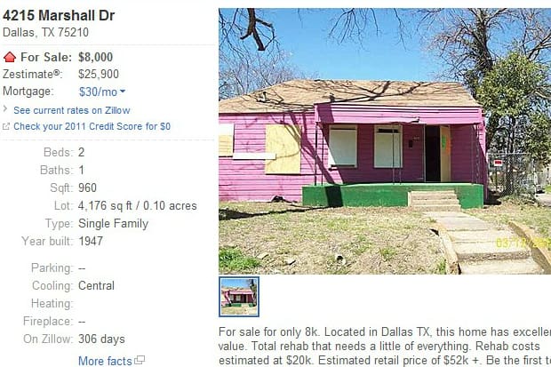 The rise in foreclosures has had a major impact on the market and left behind a wake of blight homes waiting to be bulldozed or renovated and the following are the least expensive listings in the top ten largest metro areas in the U.S. as found on Zillow (not listed in order of price). Click any image to view more details: