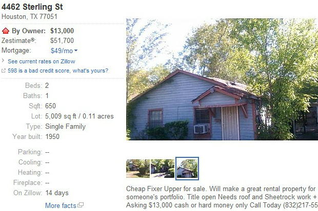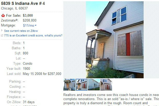 The rise in foreclosures has had a major impact on the market and left behind a wake of blight homes waiting to be bulldozed or renovated and the following are the least expensive listings in the top ten largest metro areas in the U.S. as found on Zillow (not listed in order of price). Click any image to view more details:
