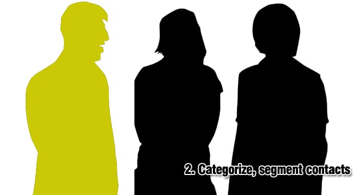 The big benefit of segmenting and categorizing your contacts is that it allows you to communicate with specific groups of people in a way that is more personalized, relevant and timely than the dreaded “batch and blast” approach. When your mass communications are relevant to the people receiving them, they are far more likely to be opened and appreciated, and hence far more effective from a marketing perspective.