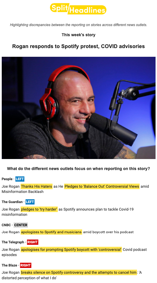 Ground News aims to give readers an opportunity to reduce their own media bias by aggregating news from many different sources in a way to showcase stories across the political spectrum. The Blindspot Report identifies news stories from both sides of the arena, helping readers see how bias is impacting the information they receive. This newsletter can give you a different perspective to understand both sides of the issue.