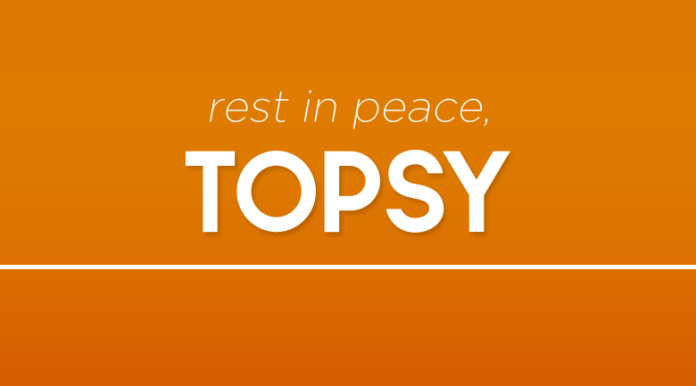 That’s because this month, Topsy, officially died a sudden, and tragic death.