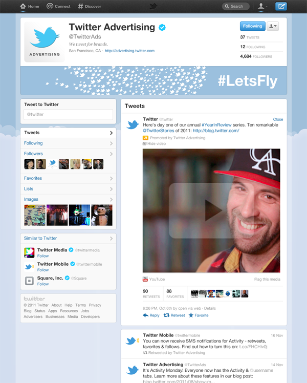 To better serve their advertisers and monetize further to earn their $1.16 billion in investments over the years, Twitter has announced brand pages with a new interface customizable by brands. Brands will be able to highlight current campaigns that users will see when they visit the brand page. Customization will include banners and promotions to match brand campaigns.