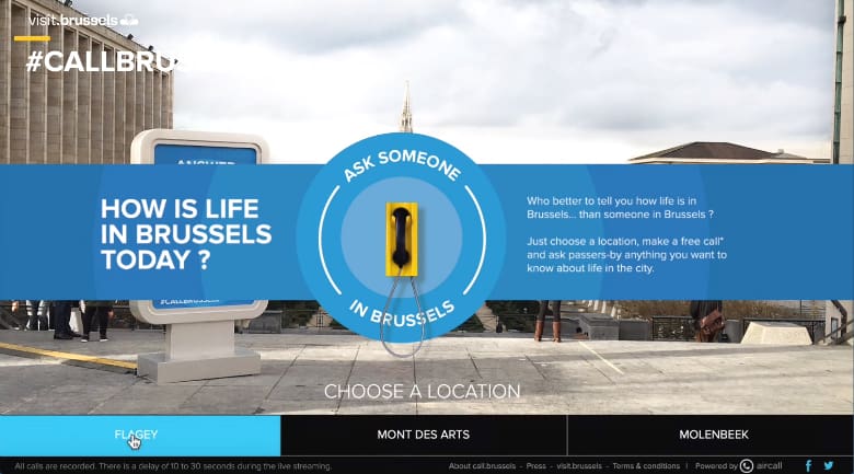 Call Brussels’is a campaign linked with the site visit.brussels, which is using the power of the Internet and the appeal of the live interaction as a way to let the local residents speak directly with the potential tourists.