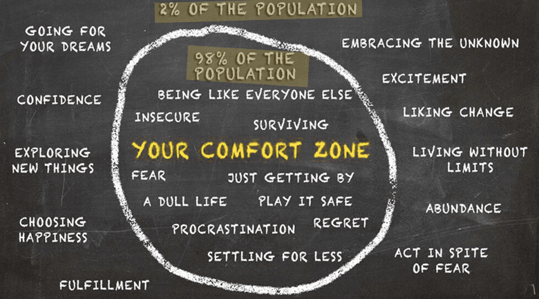 The two percent mindset pictured above is built on this concept of adaptation in the face of uncertainty. As asserted in the image, 98 percent of the population is comprised of people who are content with being “just good enough.” This demographic relies on routine, and often struggles with change, be it positive or negative. Additionally, fear of the unknown, procrastination, and general settling is inherent in the 98 percent.