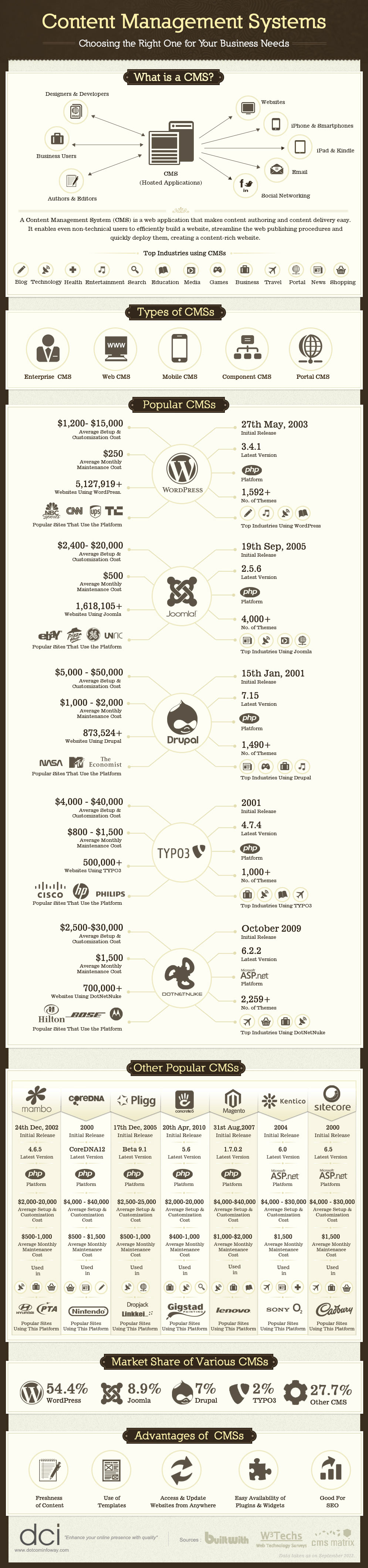 Take a look at a visual description of a CMS, different types of CMSs, and what is involved in each. We are particularly interested in the dispelling of the myth that most CMSs are free or overly simple, as that is just not the case – anyone can set up a CMS, but making it look presentable is another story entirely.
