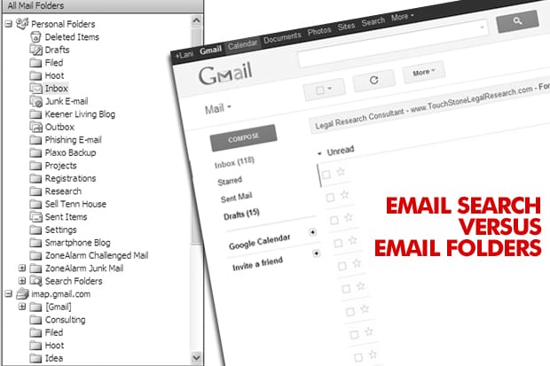 “Prior work has argued that folders may be poorly organized and sometimes ill-suited for retrieval,” the report notes. “Our data support opportunistic access,” the report concludes, asserting that users who create obsessive folder structures do not improve retrieval success, while search and threading actually promoted effective retrieval. Research reveals that although a less effective use of time, complex folder structures are being used less for information retrieval and more as a to-do list that is categorized.